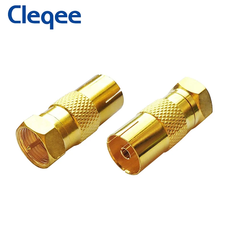 YPioneer C20128 2pcs Gold Plated F Male to TV Female RF Connector F Type to TV Aerial Coaxial Adapter Screw Type Connector