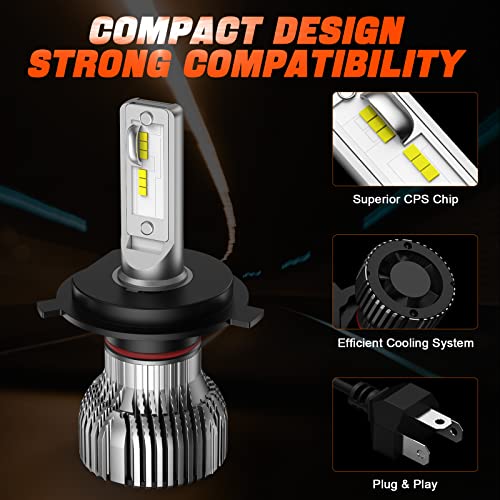 【10 Minuti per Installare】Lampadina a led h4 per auto Driver incorporato e spina non polarizzata, occupa meno spazio nell'alloggiamento, riferimento all'alogeno originale mini design di dimensioni 1:1, vero plug and play, installazione rapida in 10 minuti La lampadina a LED H4/9003 si adatta perfettamente all'alloggiamento del veicolo, anche con spazio limitato nell'alloggiamento del faro, nessuna regolazione richiesta, nessuna interferenza radio.