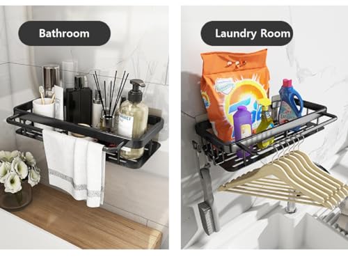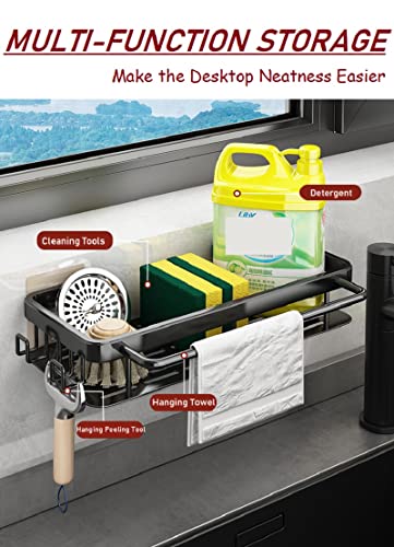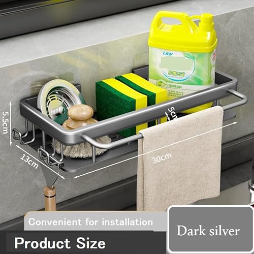 YQBFTC Autoadesivo Porta Spugne da Cucina, Antiruggine Porta Spugne Lavello Cestello in Alluminio, Organizer per lavello da Appendere con Ganci e Portasciugamani per Riporre Spugne Spazzole Detersivo