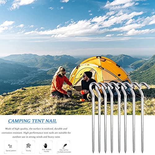 Design unico: Questo piolo per tenda argentato ha un gancio antiscivolo sulla parte superiore, che è più forte dell'impugnatura rotonda, che può trattenere meglio la corda e rendere la corda non facile da staccare. Sono ottimi per attaccare la corda o ancorare un baldacchino.