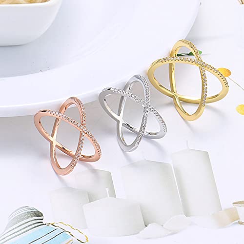 YQHWLKJ S925 Argento X Anello da dito incrociato Donna Micro pavimentato CZ Anelli di cristallo Donna Anelli d'argento-Oro rosa,7