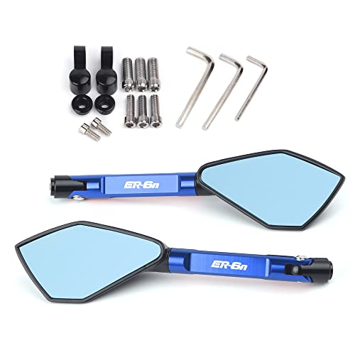✔ La migliore posizione di visione: per Kawasaki ER 6N ER-6N 2006-2010 2011 2012 2013 2014 2015 2016 2018. questi specchietti retrovisori blu per moto in alluminio sono più potenti dello specchietto retrovisore originale. hanno un'area di visualizzazione più ampia e un'asta più lunga rispetto agli specchietti originali, il che può essere meglio Osservare attentamente intorno alle spalle/gomiti.