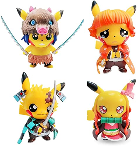 YQSSLLGL 4pcs Pikachu Demon Slayer Dress Up Action Figure Kamado Tanjiro Kamado Nezuko Modello Decorazione Personaggio Decorazione Regalo 10 cm