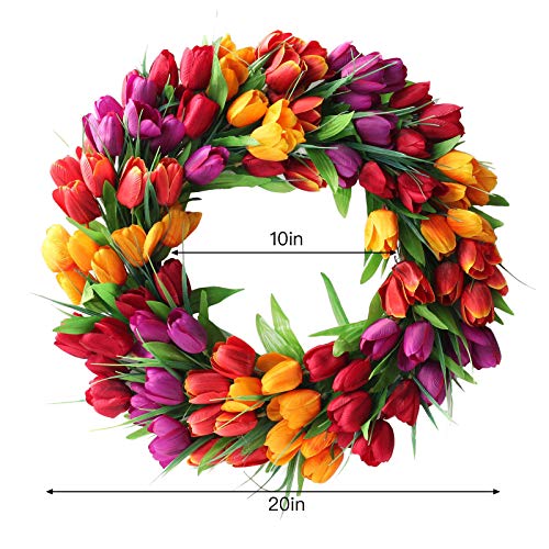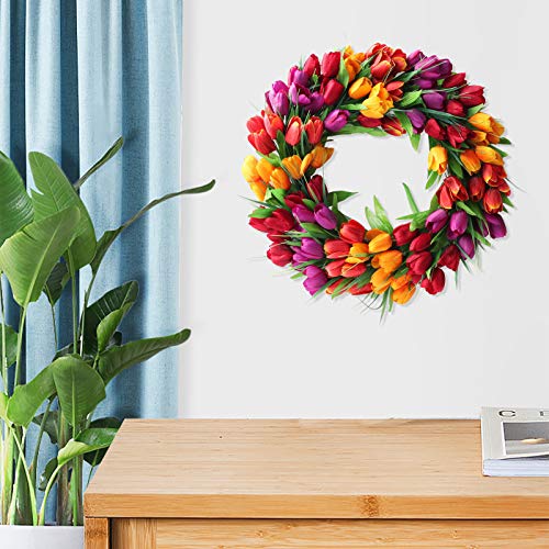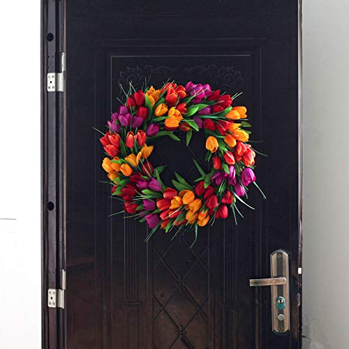 YQYAZL Ghirlanda di tulipani artificiali da 50 cm, corona di tulipani, corona di fiori per porta d'ingresso, primavera in seta, con foglie verdi, decorazione per la casa, matrimonio, viola