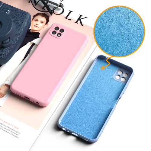 YRAKOZIN [2 Pezzi Cover Compatibile con Samsung Galaxy A22 5G, Custodia in Opaco Silicone Liquido con Protezione della Fotocamera Custodia in Gomma Morbida per Donna Ragazza - [Viola + Rosa]