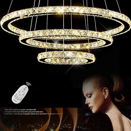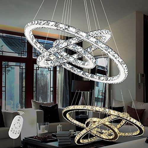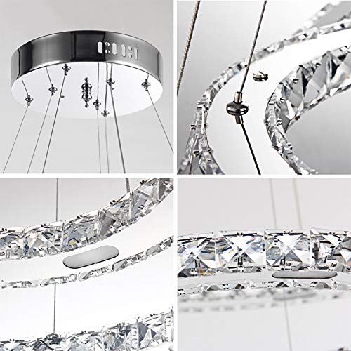 Lampada a sospensione in cristallo - Potenza: 72 W, temperatura colore: dimmerabile (2800 K-6000 K), tre anelli Dimensioni: Φ: 20 cm + 40 cm + 60 cm, materiale: cristallo, acciaio inossidabile, acrilico, tensione: 220 - 240 V, classe di efficienza energetica: A ++