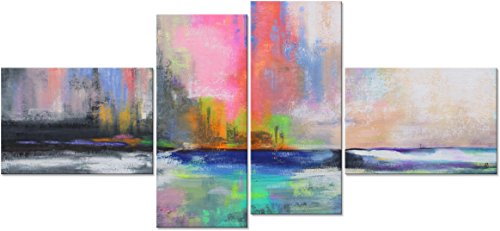 YS-Art Quadro dipinto con colori acrilici Aurora boreale 2| 160x75 cm | Muro | Mano | Arte moderna | Tela | unico | 4-parti