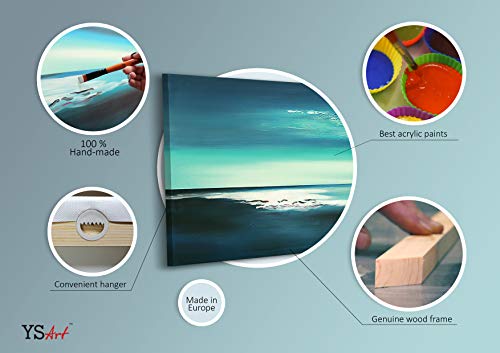 YS-Art Quadro Dipinto Con Colori Acrilici Splendore | 115x50cm | Muro | Mano | Arte Moderna | Tela| Unico| Azzurro