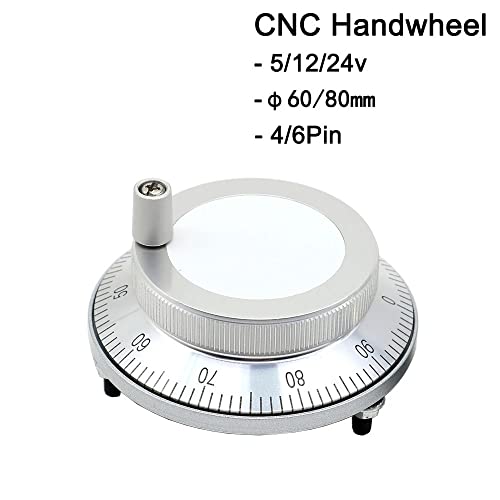 YSANO Volantino Pulser CNC 5V 12V 24V 6pin impulso 100 25 generatore di impulsi Manuale volantino PLC Macchina CNC 60mm 80mm Encoder rotativo (Color: 60mm, Size: 12V-4Pin-25pulse)