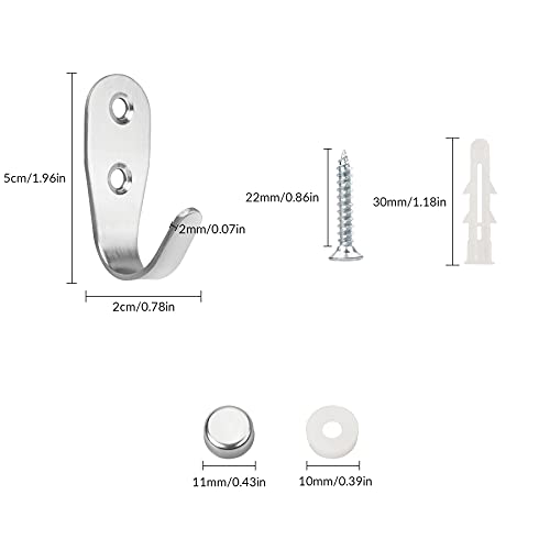 YSDMY 6 Pezzi Acciaio Inox Singolo Gancio, Ganci Appendiabiti da Parete, Ganci Da Parete, con Viti,per Appendere Cappotti, Sciarpe, Borse, Borse, Zaini, Asciugamani e Altro