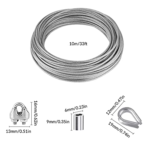YSDMY 21 Pezzi Cavetto in Acciaio inossidabile Kit 10M corda cavo acciaio per cavo da giardinaggio, sospensione per lampade da esterno