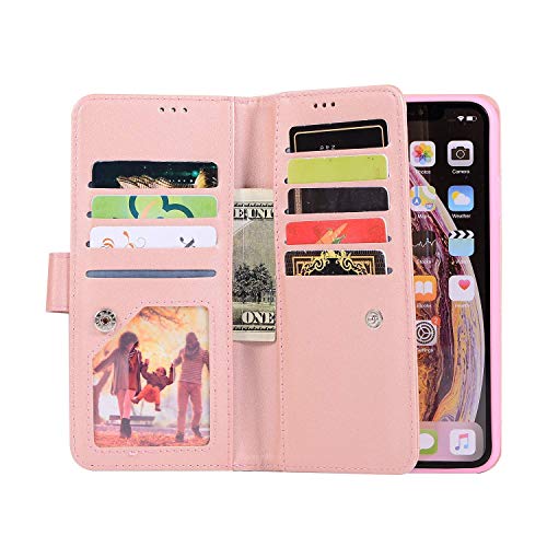 Ysimee Compatibile con Cover Huawei P30 Lite Custodie Glitter Brillantini Portafoglio Pelle Libro [9 Slot per Schede] Chiusura Magnetica Kickstand Antiurto Caso con Cerniera,Oro Rosa