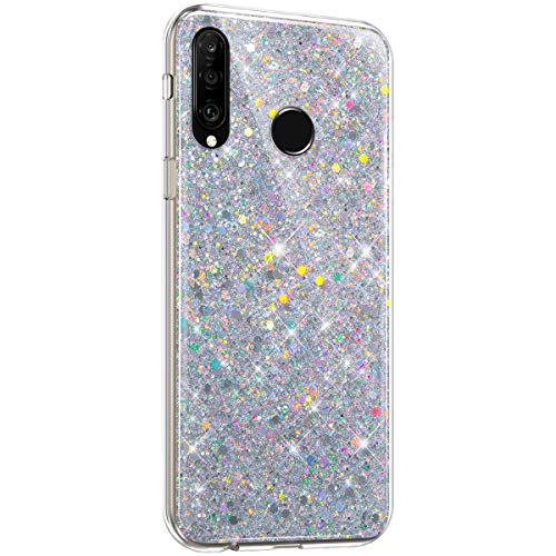 YSIMEE Compatibile con Cover Huawei P30 Lite Custodie Glitter Brillantini Silicone Trasparente Gel Puro TPU Morbida Ultra Sottile Antiscivolo Antiurto Slim Bumper Protettivo Case,Argento