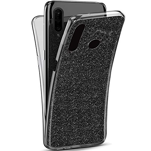 YSIMEE Compatibile Cover Huawei P30 Lite Custodie Integrale 360 Gradi Brillantini Glitter Completa Gel Trasparente Puro TPU Silicone Protettivo Morbida Ultra Sottile Antiurto Case,Nero