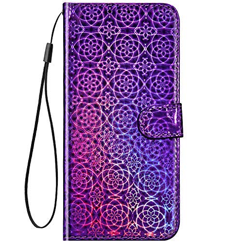 YSIMEE Compatibile con Cover Samsung Galaxy A50 Custodie Lussuoso Laser Glitter Luminoso Portafoglio PU Pelle Antiurto Folio Libro [Kickstand] [Slot per Schede] [Chiusura Magnetica] Caso,Viola