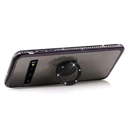 YSIMEE Compatibile Cover Samsung Galaxy S10 Plus,Custodie Trasparente Brillantini Glitter Anti-Giallo con Rinforzato Placcatura TPU Silicone Protettivo Morbida Ultra Sottile Antiurto con Anello,Nera