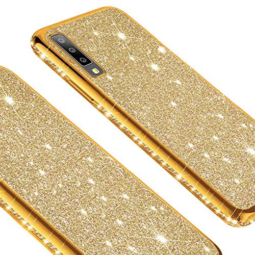 YSIMEE Compatibile Cover Samsung Galaxy A7 2018,Custodie Gel Trasparente Brillantini Glitter Case con Scintillio Diamante Rinforzato Placcatura TPU Silicone Morbida Ultra Sottile Antiurto,D'