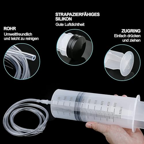 Ysimple 550ml Siringa Grande Per Liquidi, Plastica Siringa Per Olio Con Tubo, Siringa Senza Ago, Siringa Aspira Liquidi Per Idroponica Misurazione, Giardino Industria, Alimentazione Animali Domestici