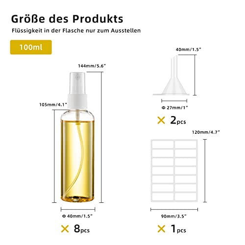 Ysimple 8 Pezzi Bottigliette Spray Vuote, 100 ml set di bottiglie da viaggio in plastica Flacone spray di profumo ricaricabile, a prova di fuoriuscita, vuoto per i viaggi e l'uso quotidiano