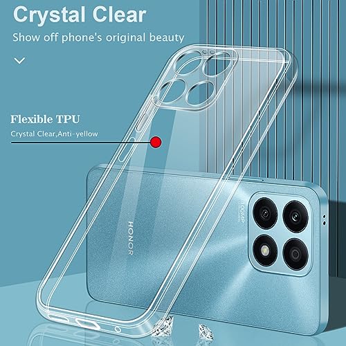 Ysjisy Cover per Huawei Honor x8a (Non per Honor x8), Morbido Trasparente TPU Protettiva Custodia con Due Vetro Temperato Pellicola Protettiva per Huawei Honor x8a