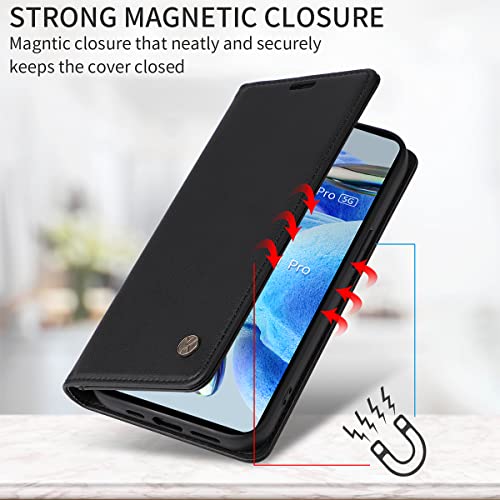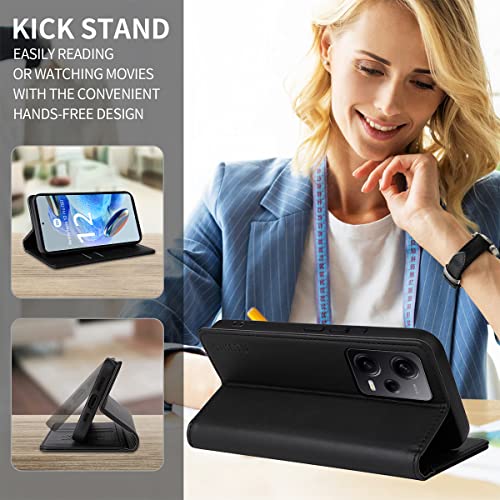Ysjisy Cover per Xiaomi Redmi Note 12 PRO 5G, Nero PU Pelle Libretto Flip Protettiva Custodia con 1 Pezzo Vetro Temperato Pellicola Protettiva per Xiaomi Redmi Note 12 PRO 5G / Poco X5 PRO 5G