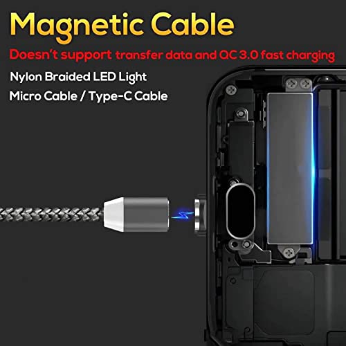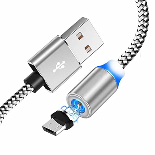 YSJJZRL Cavo magnetico, 2 m, magnetico, micro rotante, rotondo, in nylon resistente, con indicatore LED, per micro dispositivi USB, argento