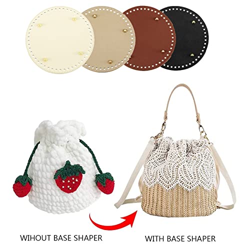 Fondo della borsa in 4 colori: riceverai 4 pezzi di modellatore rotondo per la parte inferiore della borsa all'uncinetto, sono 4 colori, nero, oro, beige e marrone, adatti per accessori per la realizzazione di borse in pelle fai-da-te.