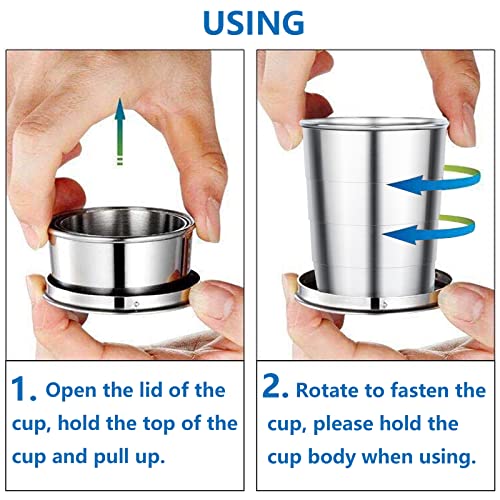 Ysmorla 2 Pezzi Tazza da Viaggio da 250ml, Tazza in Acciaio Inox Pieghevole con Coperchio, Tazza Retrattile Riutilizzabile Set di Bicchieri da Bere Espandibile per Campeggio e Escursioni