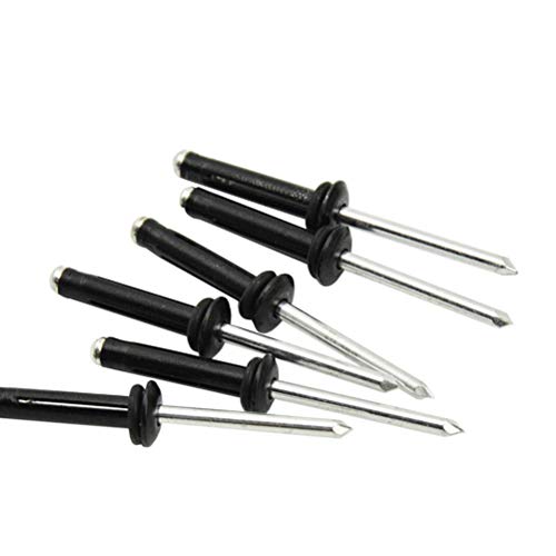 ✔ Dimensioni: 5,9 cm. La dimensione del foro è di 5 mm, la testa dei rivetti è di circa 10 mm, la parte nera è di 2,5 cm. Per l'installazione è necessario uno strumento di rivettatura. (Strumento non incluso)