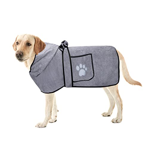 Facile da indossare e da togliere: l'asciugamano dell'accappatoio per animali domestici ha una cinghia in vita separata, che è comoda per avvolgere il corpo del cane e impedire che l'asciugamano dell'accappatoio cada. È molto amichevole con i cani con le zampe corte.