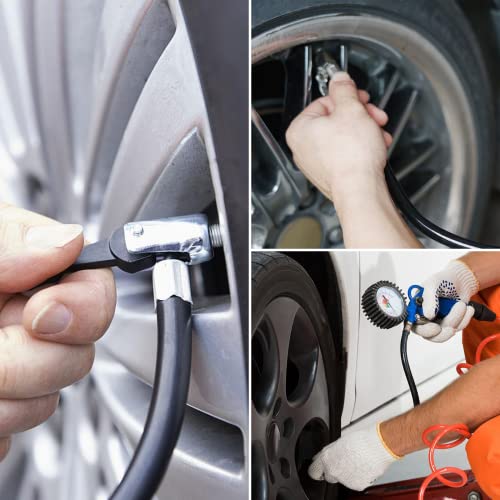 【TUBO DI PROLUNGA PER GONFIAGGIO PNEUMATICI】 L'ugello del pneumatico può essere rapidamente collegato e scollegato per garantire che la pressione dell'aria all'interno del pneumatico non perda quando il pneumatico viene gonfiato e scollegato.