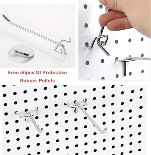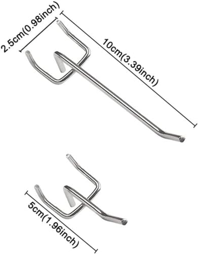 Materiale robusto: questi ganci per pannello forato sono realizzati in materiale di acciaio al carbonio di alta qualità, resistente all'usura, alla corrosione e alla ruggine con la superficie di placcatura liscia e resistente alla corrosione.