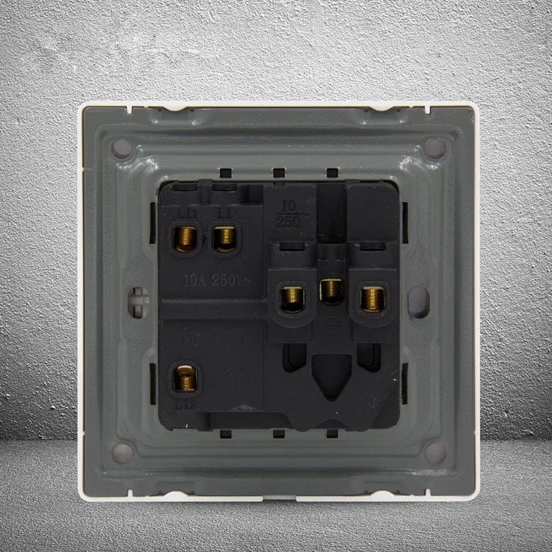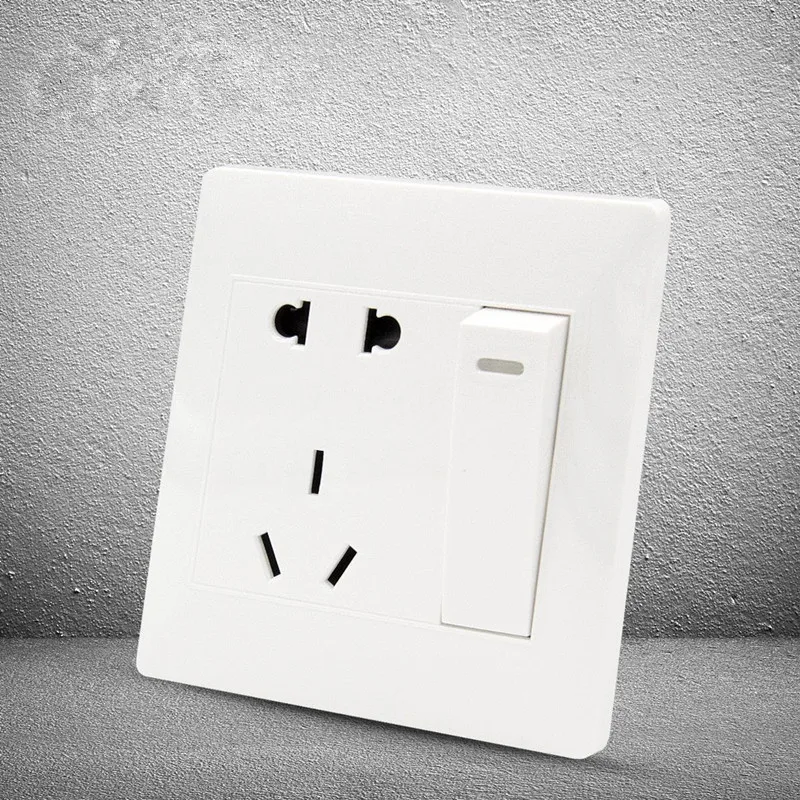 1PCS YT1801 White Flush Receptacle Five hole socket+One Button Double Control Switch Wall Socket 86*86MM Outlet