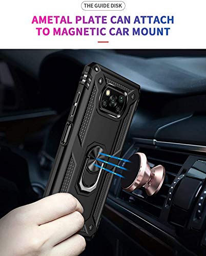 Ytaland Cover Compatibile con ZTE Blade A71, 2 Pezzi Pellicola Vetro Temperato, Grado Militare 360° Anello Supporto Case TPU Silicone Antiurto Custodie, colore: Nero