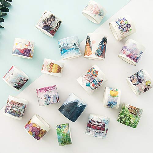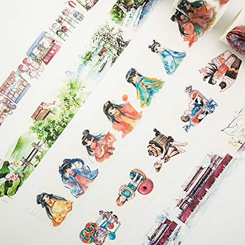 YTAPE Account mano originale e nastro di carta 3 volumi, un set di edifici antichi dipinti a mano, adesivi decorativi fai da te a mano a colori, Mese Ling freddo (40Mm)
