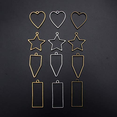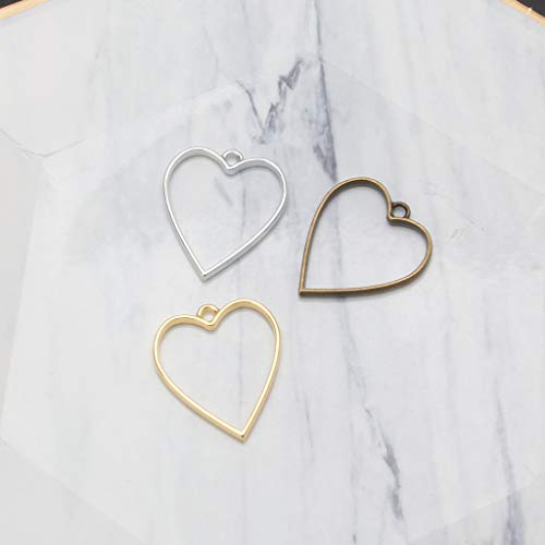 Ytgfd40_Hobby creativi 10Pcs Frame Pendant Open Back Bezel Geometrica Hollow Frame Resina per DIY Resin Jewelry Making (Argento, Cuore)