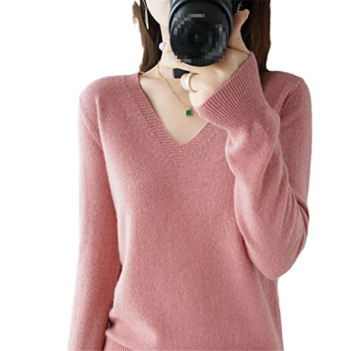 YTR6RTW Autunno Inverno Maglione Donne Mantenere Caldo V-Collo Pullover Maglia Maglione Manica Lunga Sciolto Top, rosa, XXL