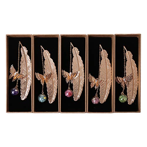 YU-HELLO - Segnalibri in metallo con piume e farfalle, con etichette, segnalibri, fatti a mano, accessori fai da te, idea regalo
