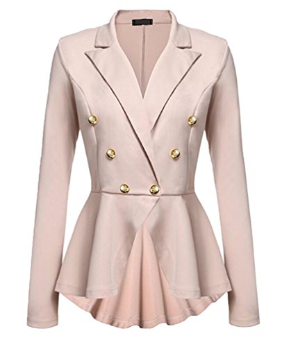 YuanDian Donna Autunno Casuale Doppio Petto Slim Fit Maniche Lunghe Blazer Lavoro Affari Elegante Signora Tailleur Giacchino Giacca Cachi L