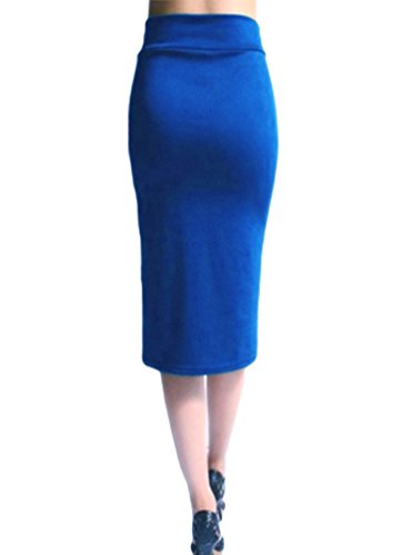 YuanDian Donna Estive Slim Fit Tinta Unita Vita Alta Midi Gonna A Tubino Aderente Elasticizzata Longuette Tubo Matita Gonne Blu L