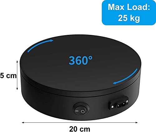 Yuanj Piattaforma Professionale Girevole di 360 Gradi, Diametro di 20cm Piatto Girevole Rotante Elettrico Come Base per Fare Foto, Video,Mostra Prodotto- Nero