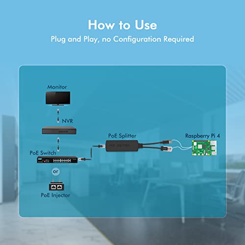 【Come Usare】Usando tra lo switch PoE o l'iniettore PoE e il dispositivo NON-PoE. Nessun set up richiesto, plug and play, una soluzione semplice per espandere la rete dove si desidera posizionare i dispositivi di rete, ma non ha una presa di corrente.