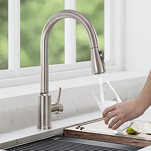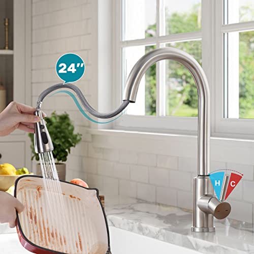 Miscelatore da Cucina con Doccetta Estraibile✔️Rubinetto a collo d'oca da 15" ad arco alto che si adatta a quasi tutti i lavelli da cucina, il tubo flessibile estraibile da 24" offrono un'ampia gamma di accesso al lavaggio e la testina di spruzzatura si ritrae sempre verso l'ugello dopo ogni utilizzo.
