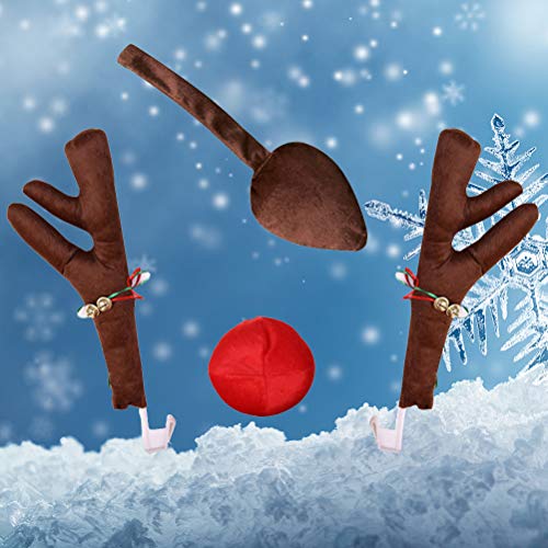 Yuanqu 4 Pezzi di Natale Auto Cervo Renna Corna Veicolo con Corna Naso Rosso Coda Jingle Bells Kit Costume Auto per la Decorazione di Natale Regalo Regalo Presente