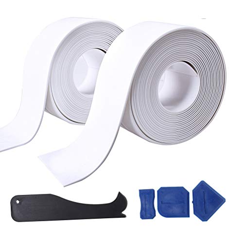 Yuanzi - Nastro sigillante, impermeabile, sigillante, anti-muffa, per vasca da bagno, lavello, cucina, toilette, con 4 strumenti per lisciare la colla (2 pezzi)