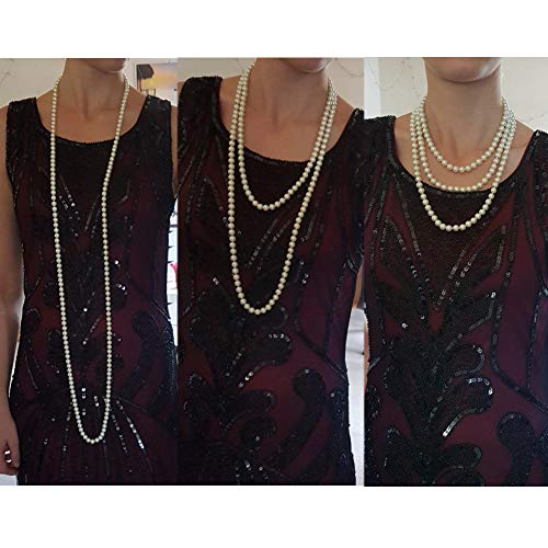 Collana di perle: questa lunga collana di perle è un buon accessorio per feste a tema degli anni '20 o altre feste di abbigliamento, adatte per essere indossate con i maglioni