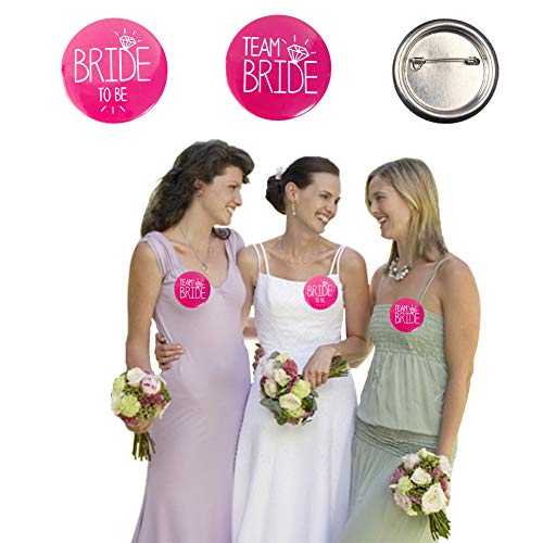 Yuccer 17 PCS Spilla Addio al Nubilato 1 PCS Bride to be Badges e 16 PCS Spille Team Bride Accessori Addio al Nubilato Gadget Matrimonio (Rosa)