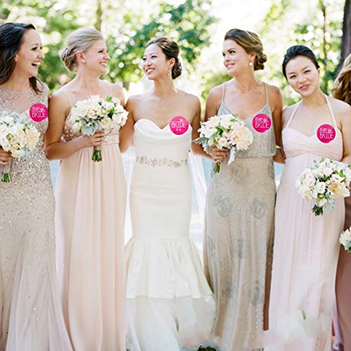 DIMENSIONE: la dimensione del distintivo della sposa e del distintivo della damigella d'onore sono 5,8 cm / 2,3 pollici. Il badge si trova dietro la spilla da balia, che può essere fissata direttamente sui vestiti