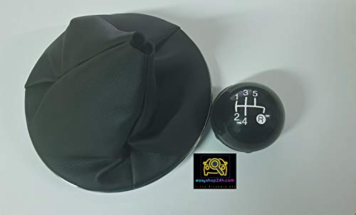 YUCHEN Set Cuffia e Pomello Leva Cambio per Fiat 500 500C 312 2007-2015 Impugnatura 5 Marce Nero