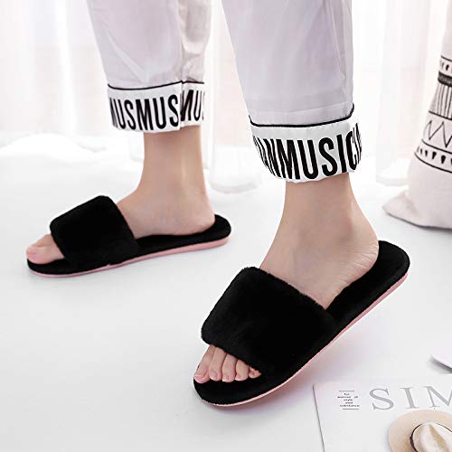 Yuchen Nuove Pantofole di Mezza Stagione, Pantofole Aperte da Donna, Pantofole di Cotone per la casa, Pantofole di Peluche (Nero, Numeric_35)